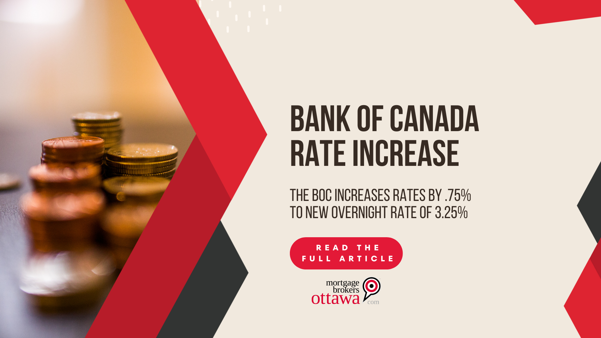 Bank of Canada Increases Rates by .75% to a New Overnight Rate of 3.25%