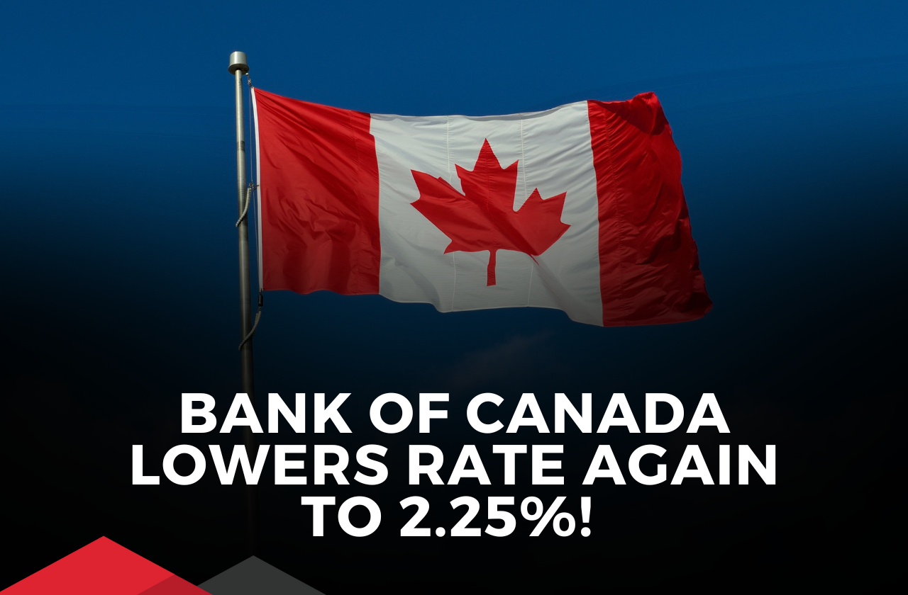 The Bank of Canada lowers policy rate by 0.50 basis points to a new policy rate of 2.50%.